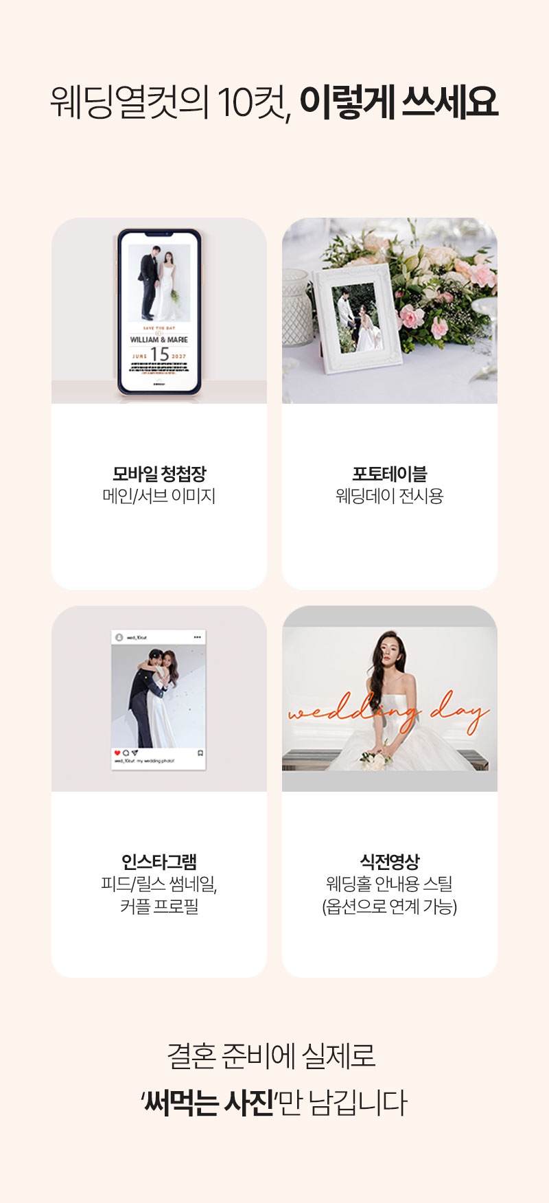 모바일 청첩장 + 포토테이블용 화보 부담 없이 완성하세요